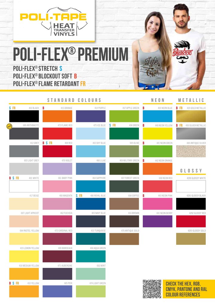 POLI-FLEX® PREMIUM je vhodný na textílie ako bavlna, zmesi polyester/bavlna a polyester/akryl.