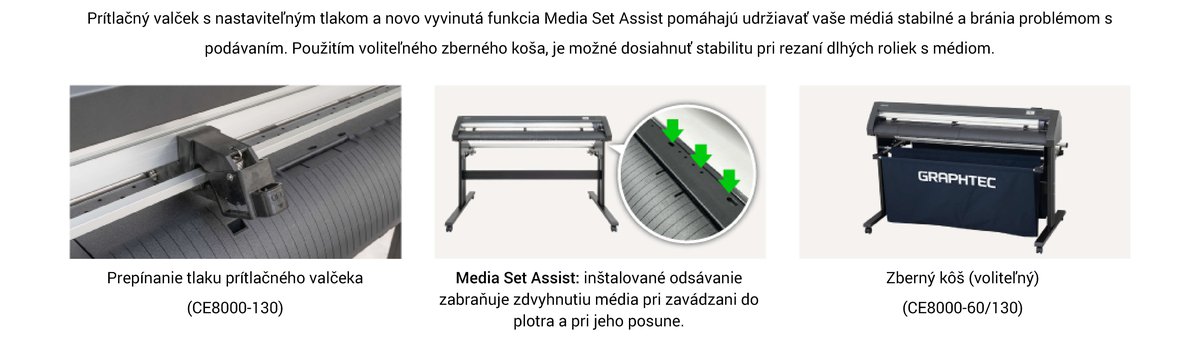Séria Graphtec CE8000 je dokonalým riešením pre tých, ktorí chcú zvýšiť produkciu s vyššou efektivitou v oblasti rezanej a tlačenej grafiky. V porovnaní s predchádzajúcim modelom CE7000 bola zvýšená tuhosť zariadenia, čím sa zlepšila aj kvalita vedenia média a rezu. Novinkou je pripojenie cez WLAN pre zvýšenie pohodlia a flexibility.