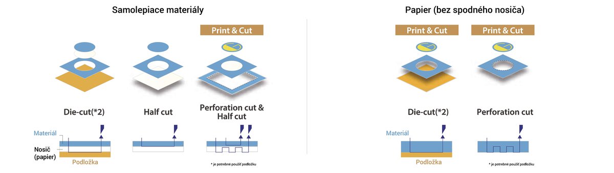(*1) Prevádzkované so špecifickými nastaveniami rezania a médiom určeným spoločnosťou Graphtec. Na dlhé rezanie sa používa kôš.