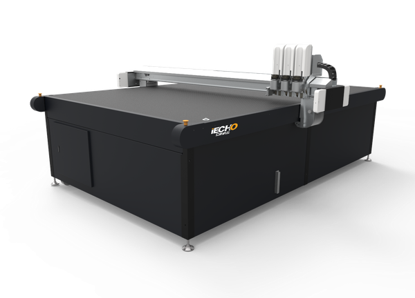 - iECHO BK3 je zamerané na produktivitu a ponúka systém kontinuálneho rezania. Médiá a materiálny sú automaticky podávané, rezané a zhromažďované posuvným pásom.