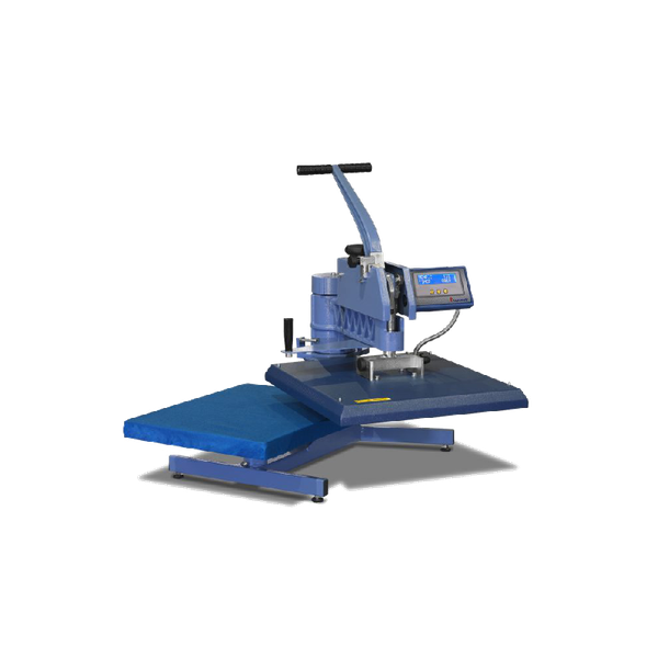 Masívny lis s otočnou hornou platňou do strany. Spodná platňa sa dá ľahko zameniť za rovnú platňu inej veľkosti a aj platňu pre čiapky.
