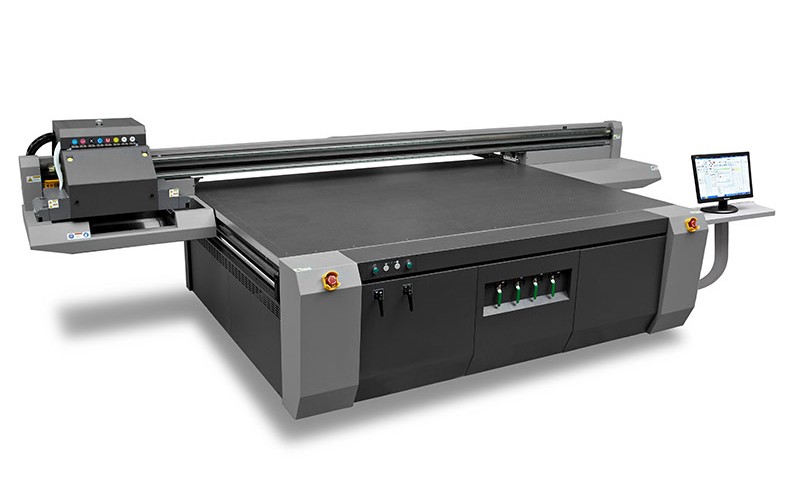 Flatbed UV LED tlačiareň s pracovnou plochou 1,6 x 1 m