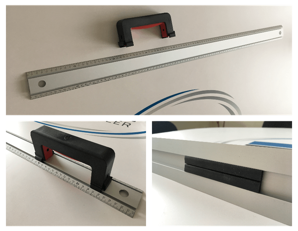 Hliníkové s metrickou stupnicou a pohyblivým madlom. V spodnej časti pravítka je žliabok s protisklzovou gumou.